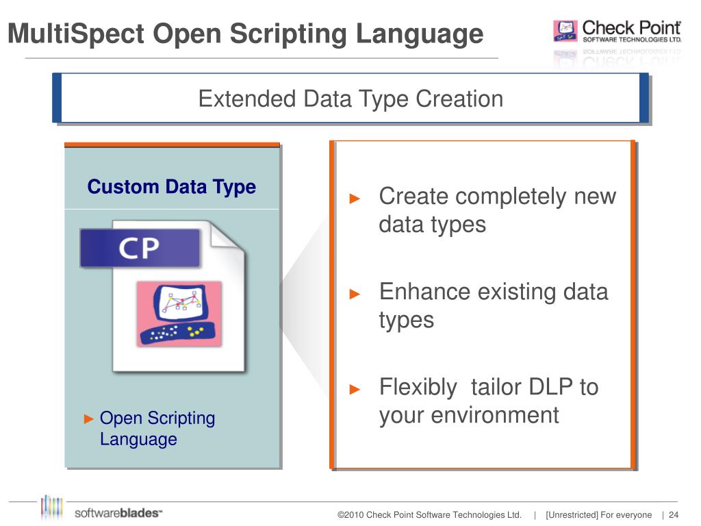 MultiSpect Open Scripting Language Custom Data Type • Open Scripting Language Extended Data Type Creation • Create completely new data types • Enhance existing data types • Flexibly tailor DLP to your environment