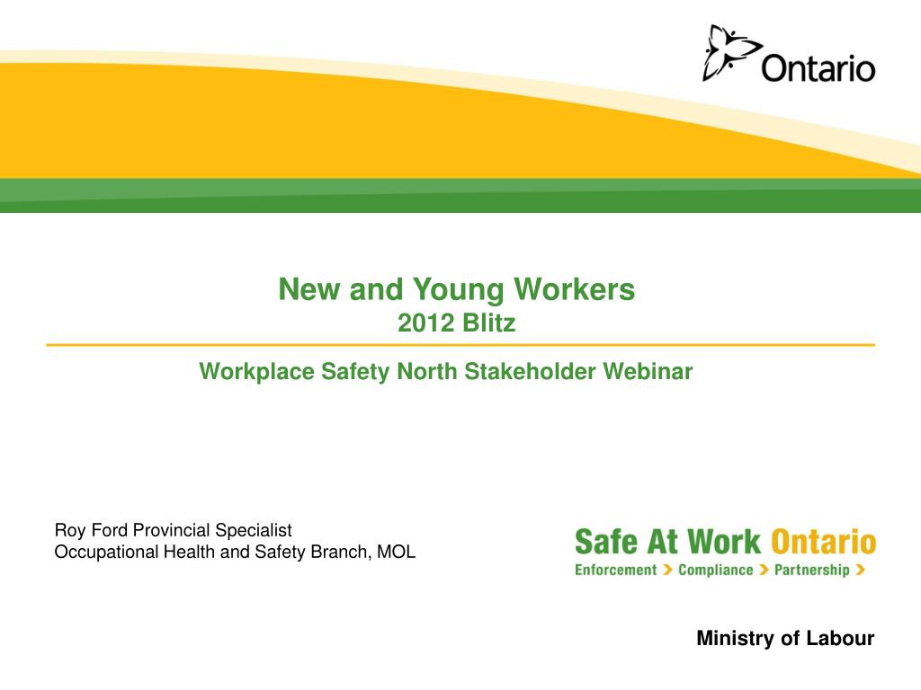 New and Young Workers2012 Blitz Workplace Safety North Stakeholder Webinar