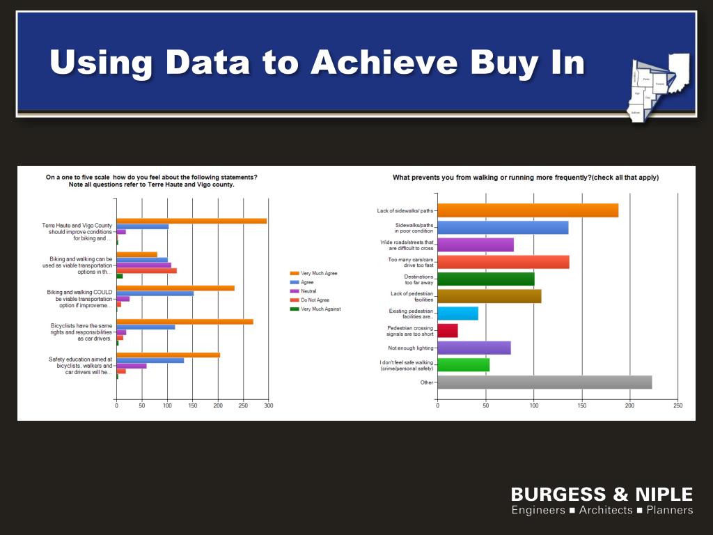 Connections (from survey) • Across the Wabash River & Wetland • Covered Bridge trail in north east Vigo County to Parke County • Wabash Valley Sports Center • Ivy Tech and the Industrial Park • St. Mary of the Woods College and West Terre Haute