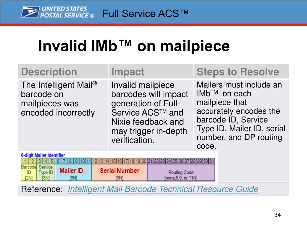 Full Service ACS™ Invalid IMb™ on mailpiece