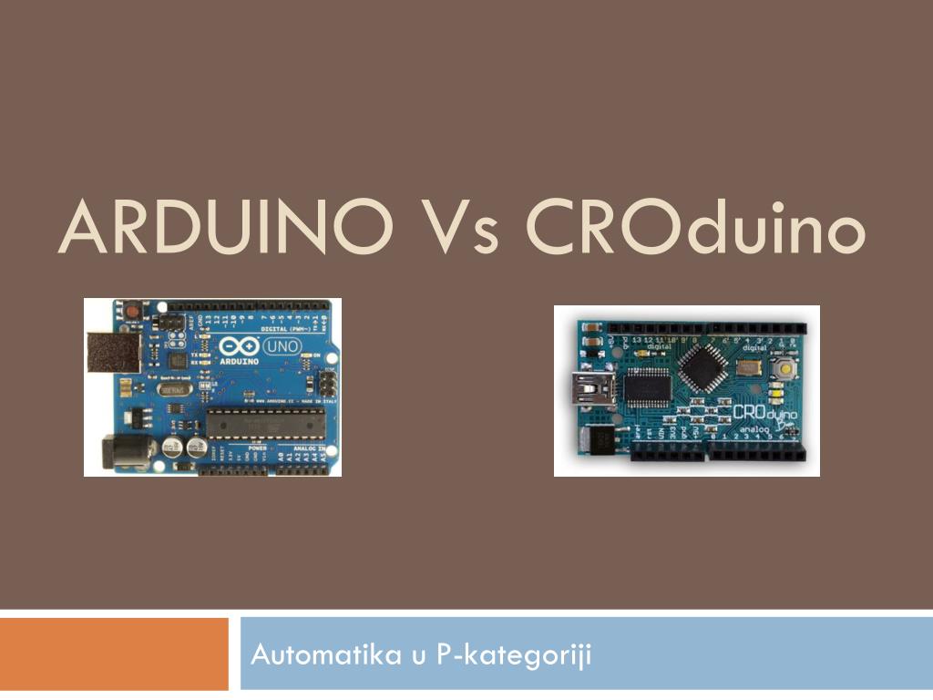 Arduino V s CRO duino. Automatika u P-kategoriji. Zašto Arduino ?. Jeftino Jednostavno Zabavno. Što je mikrokontroler ?. Arduino …. Digitalni izlazi i ulazi + analogni ili PWM izlazi. Struktura Arduina. USB veza sa računalom. Srce Arduina je mikrokontroler ATmega328.