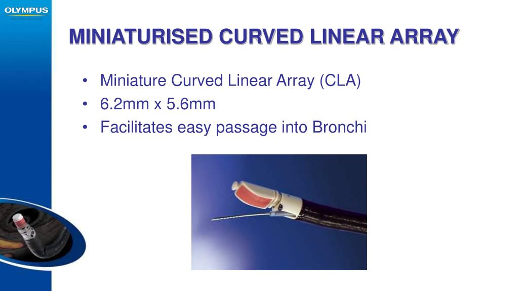 MINIATURISED CURVED LINEAR ARRAY • Miniature Curved Linear Array (CLA) • 6.2mm x 5.6mm • Facilitates easy passage into Bronchi
