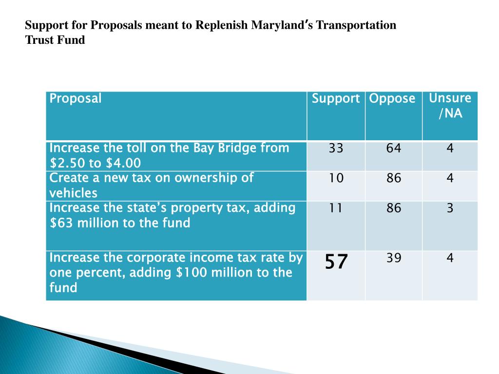 Support for Proposals meant to Replenish Maryland’s Transportation Trust Fund