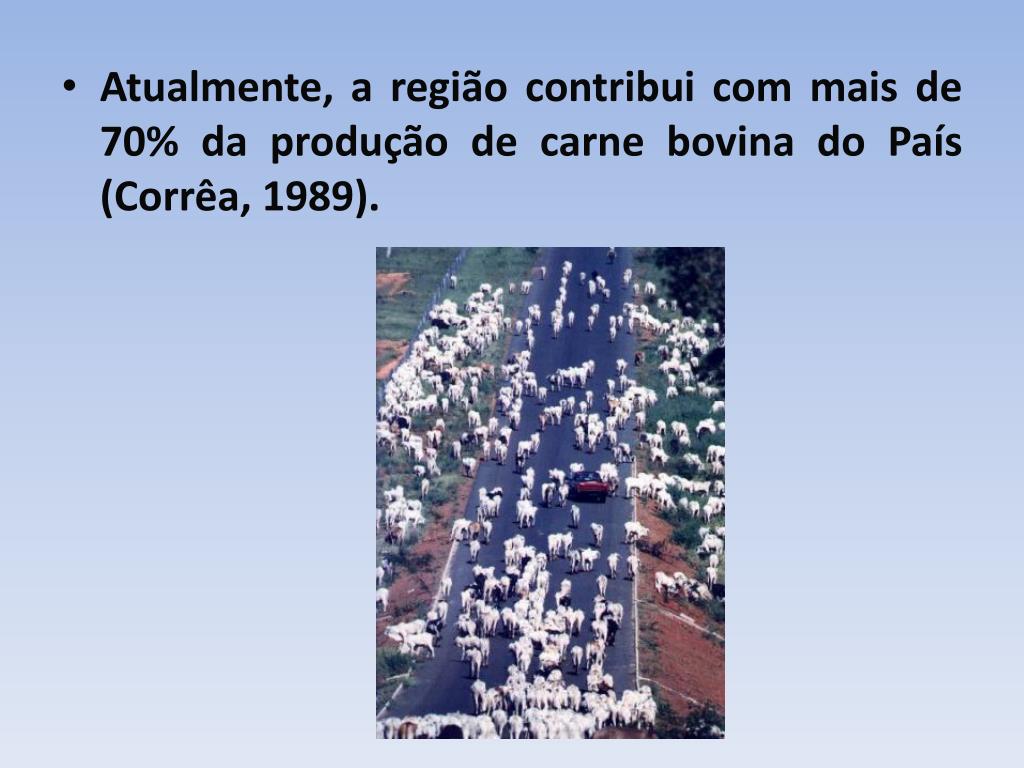 Atualmente, a região contribui com mais de 70% da produção de carne bovina do País (Corrêa, 1989).