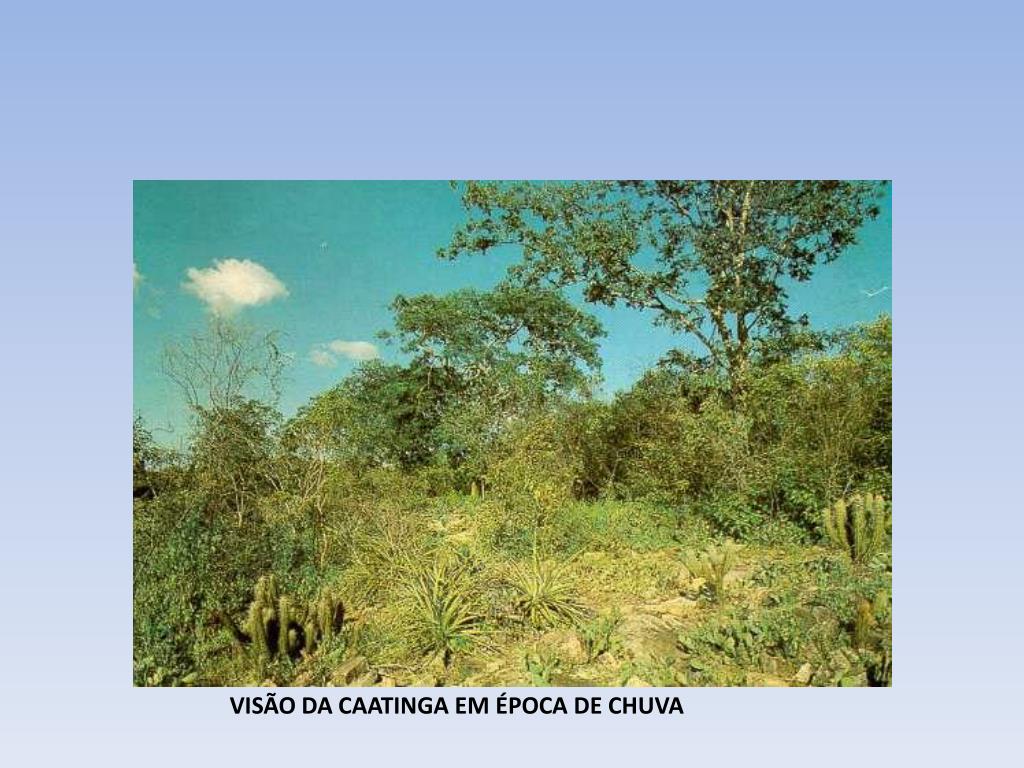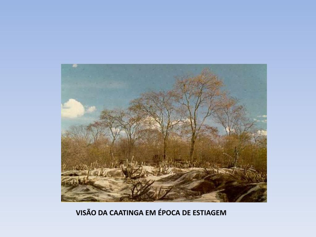 Abrange os estados do Ceará, Rio Grande do Norte, Paraíba, Pernambuco, Sergipe, Alagoas, Bahia, sul e leste do Piauí e norte de Minas Gerais. • Possui um clima semi-árido com temperaturas médias anuais entre 27ºC e 29ºC, e índices pluviométricos irregulares variando de 250 a 1000mm por ano, concentrando-se durante 3 a 5 meses. Na estação seca a temperatura do solo, que é raso, pedregoso e alcalino, pode chegar a 60ºC.