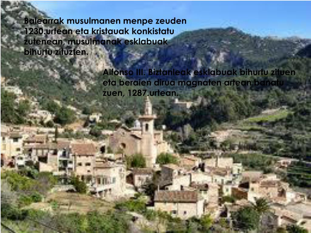 Balearrak musulmanen menpe zeuden 1230.urtean eta kristauak konkistatu zutenean, musulmanak esklabuak bihurtu zituzten. Alfonso III. Biztanleak esklabuak bihurtu zituen eta beraien dirua magnaten artean banatu zuen, 1287.urtean.