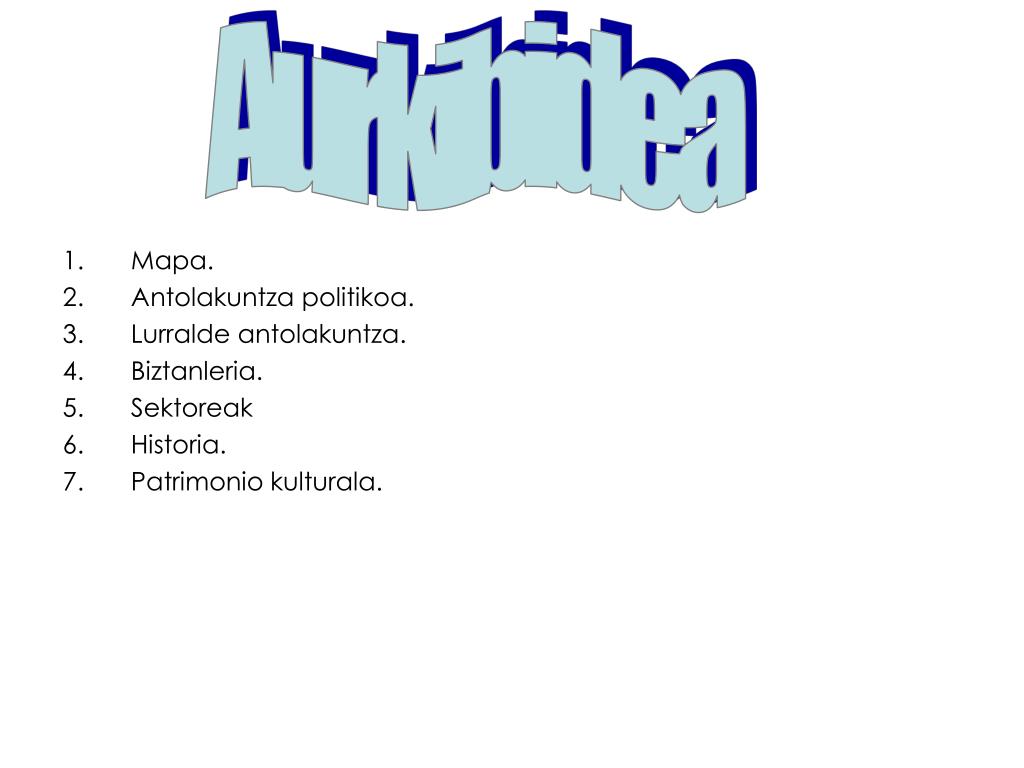 Aurkibidea • Mapa. • Antolakuntza politikoa. • Lurralde antolakuntza. • Biztanleria. • Sektoreak • Historia. • Patrimonio kulturala.