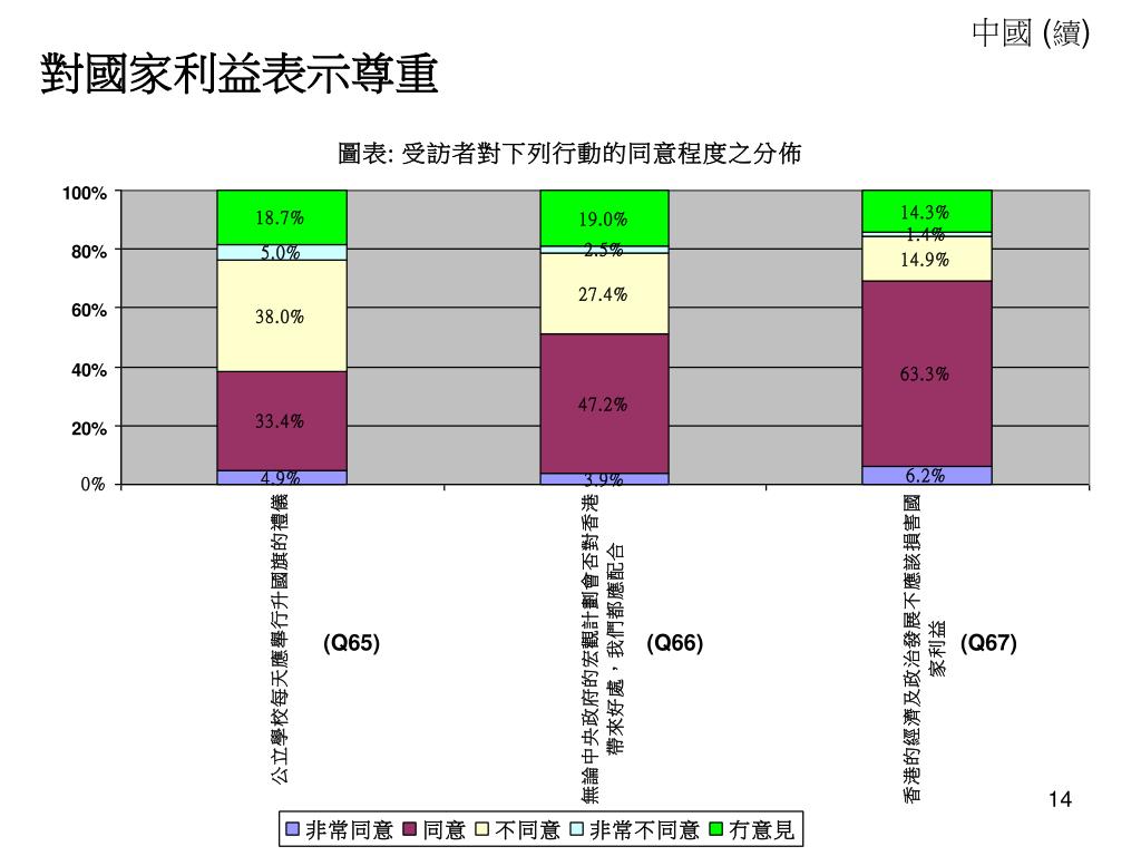 中國 (續) 對國家利益表示尊重 (Q65) (Q66) (Q67)