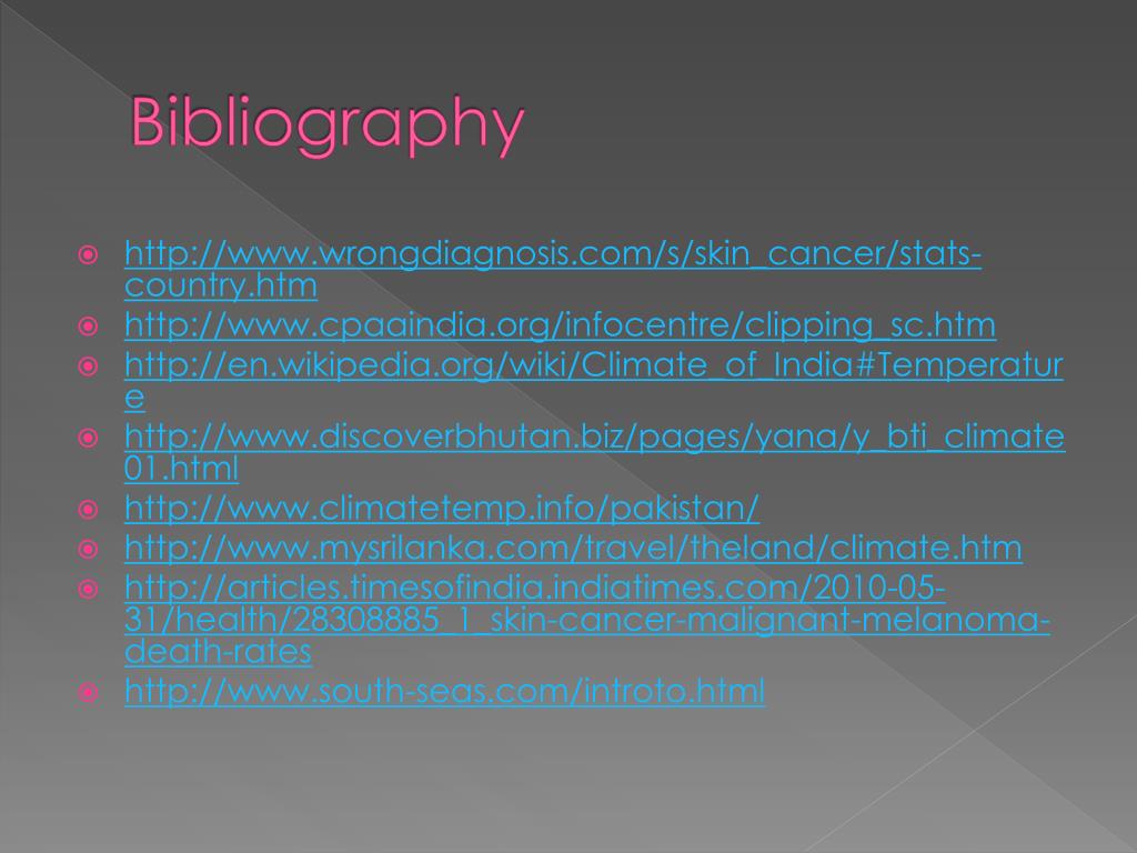 Bibliography • http://www.wrongdiagnosis.com/s/skin_cancer/stats-country.htm • http://www.cpaaindia.org/infocentre/clipping_sc.htm • http://en.wikipedia.org/wiki/Climate_of_India#Temperature • http://www.discoverbhutan.biz/pages/yana/y_bti_climate01.html • http://www.climatetemp.info/pakistan/ • http://www.mysrilanka.com/travel/theland/climate.htm • http://articles.timesofindia.indiatimes.com/2010-05-31/health/28308885_1_skin-cancer-malignant-melanoma-death-rates • http://www.south-seas.com/introto.html