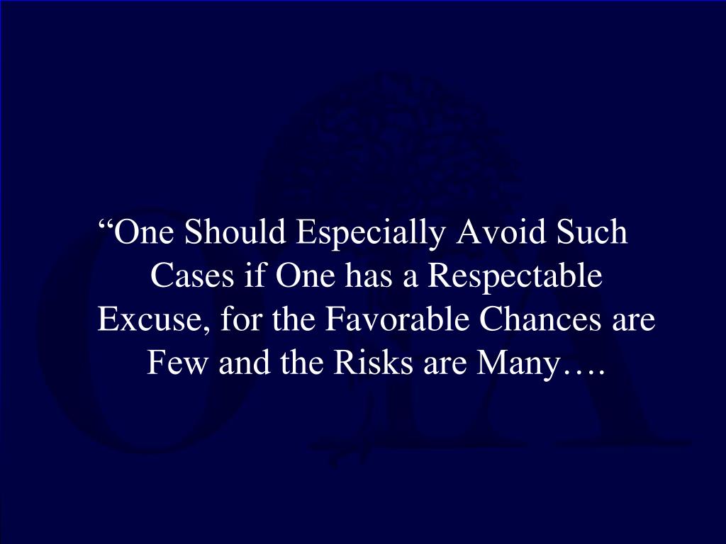 “One Should Especially Avoid Such Cases if One has a Respectable Excuse, for the Favorable Chances are Few and the Risks are Many….