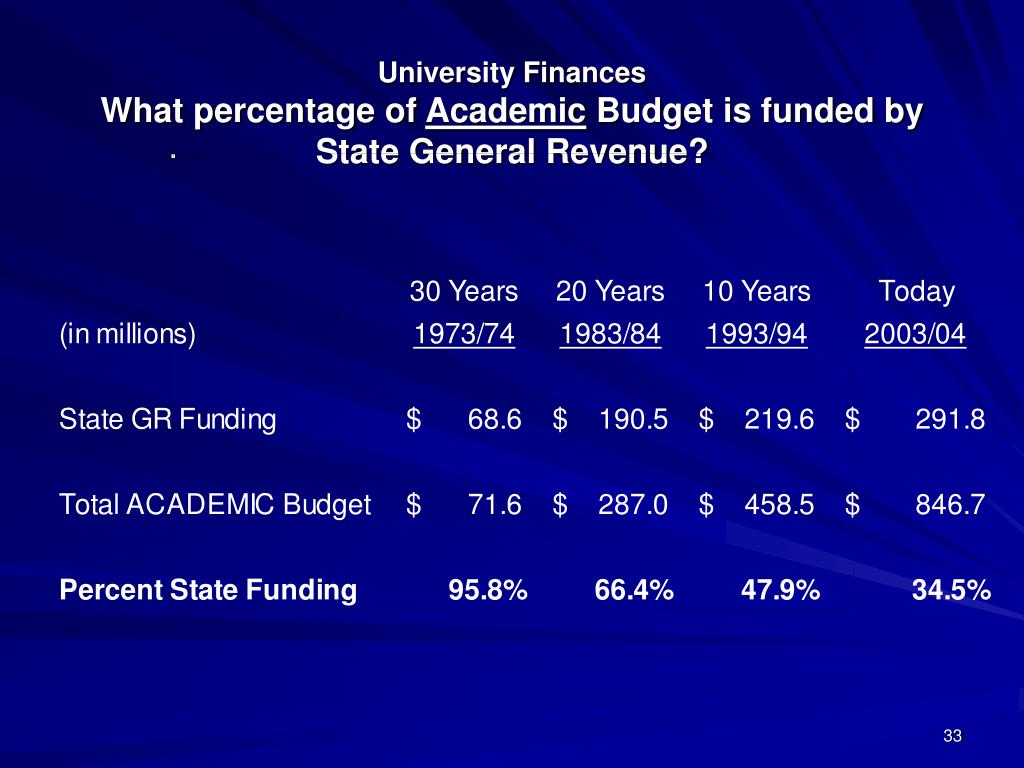 University FinancesWhat percentage of Academic Budget is funded by State General Revenue?