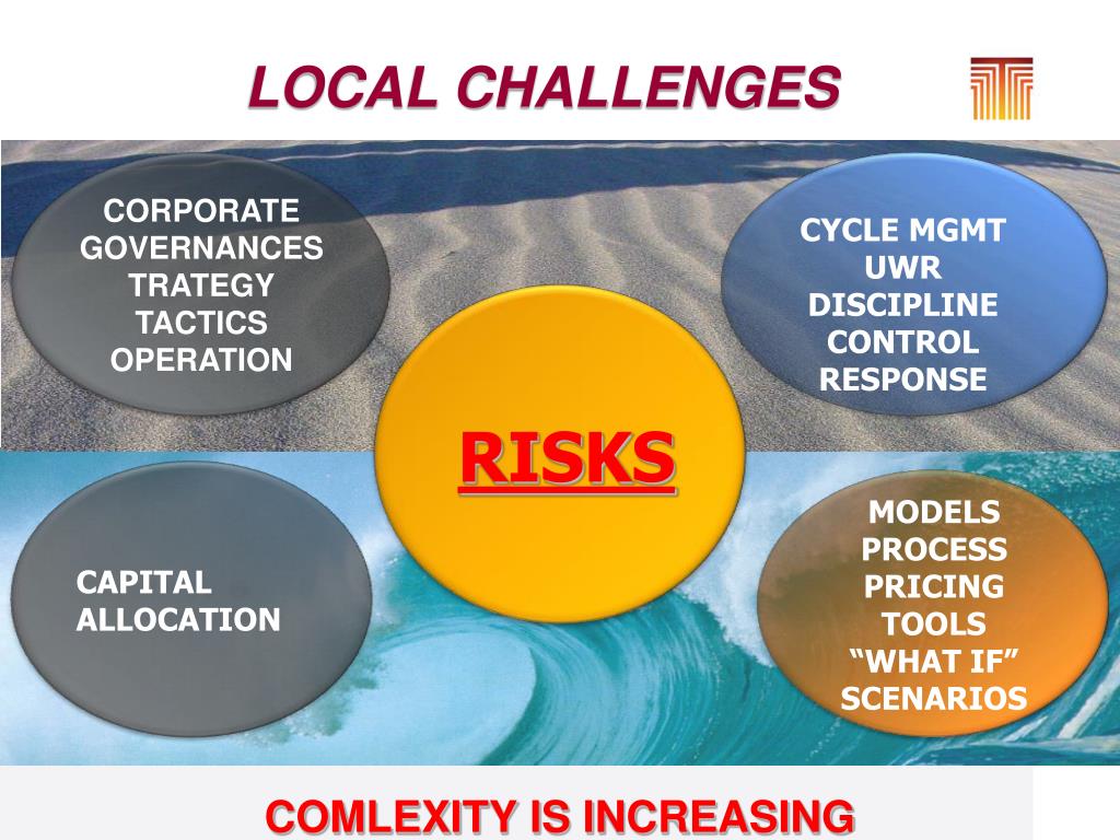 CYCLE MGMT UWR DISCIPLINE CONTROL RESPONSE RISKS MODELS PROCESS PRICING TOOLS “WHAT IF” SCENARIOS CORPORATE GOVERNANCESTRATEGY TACTICS OPERATION CAPITAL ALLOCATION LOCAL CHALLENGES COMLEXITY IS INCREASING