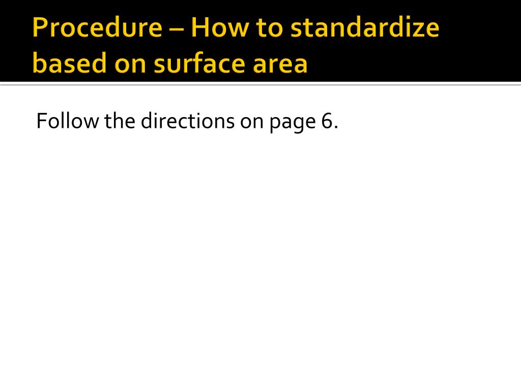 Procedure – How to standardize based on surface area Follow the directions on page 6.
