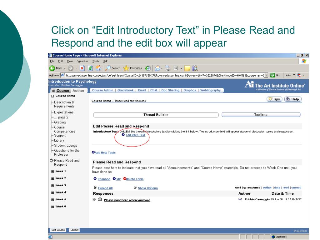 Click on “Edit Introductory Text” in Please Read and Respond and the edit box will appear