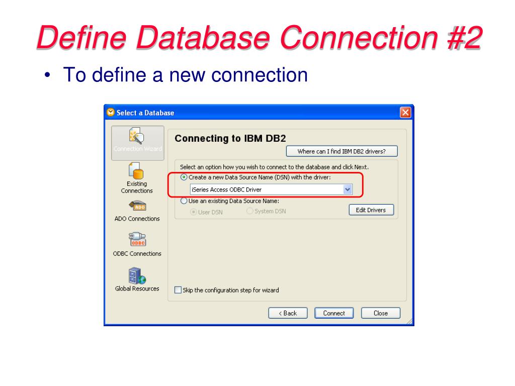 Define Database Connection #2 • To define a new connection