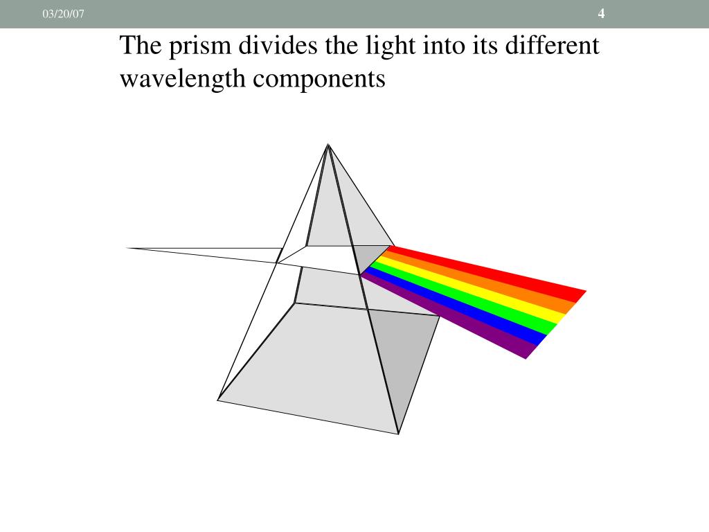 The Principles of Chromatics. Light. Electromagnetic radiation, that produces a sight perception when being hit directly in the eye The wavelength of visible light is 400 - 700 nm. Visible Light. The prism divides the light into its different wavelength components. Color.