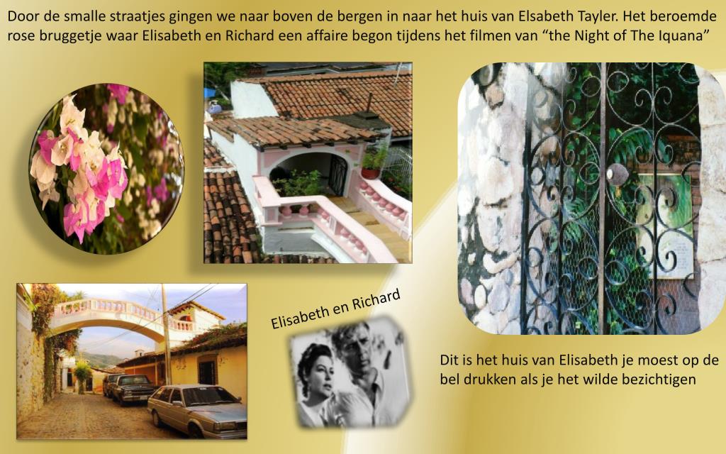 Door de smalle straatjes gingen we naar boven de bergen in naar het huis van Elsabeth Tayler. Het beroemde rose bruggetje waar Elisabeth en Richard een affaire begon tijdens het filmen van “the Night of The Iquana” Elisabeth en Richard Dit is het huis van Elisabeth je moest op de bel drukken als je het wilde bezichtigen