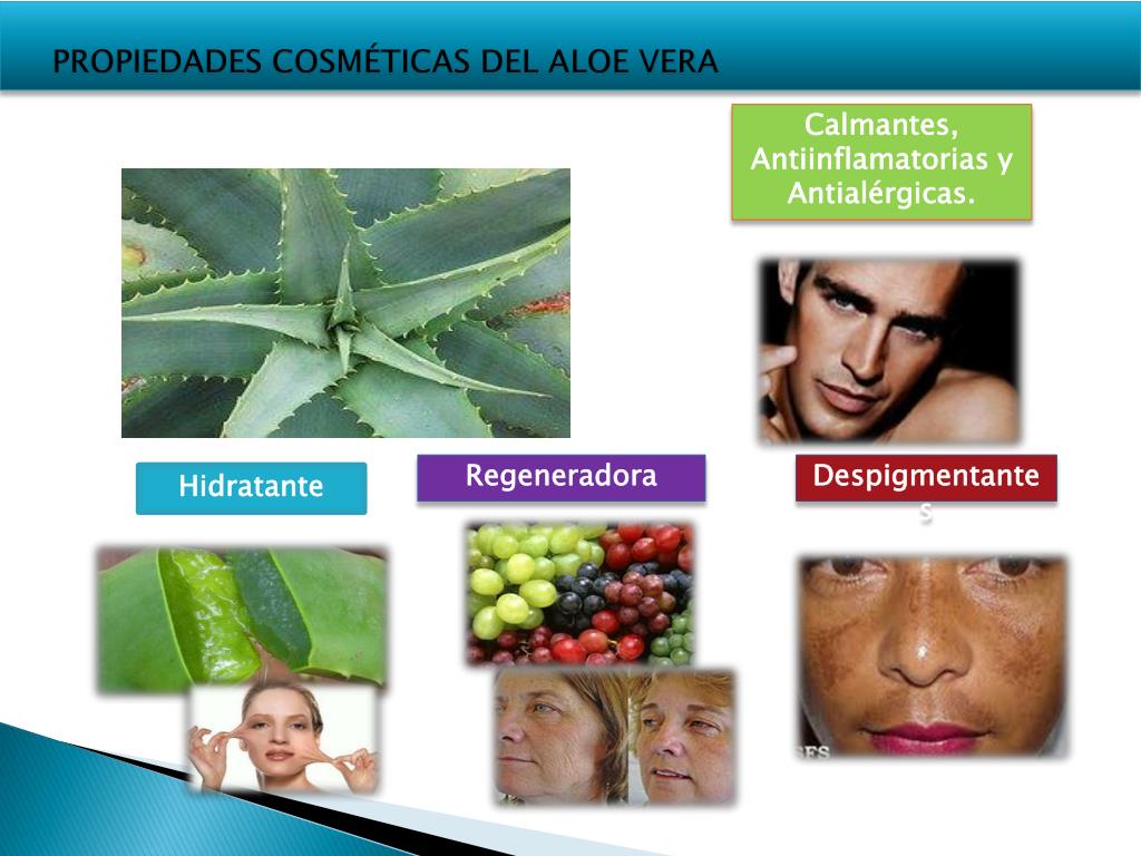 PROPIEDADES COSMÉTICAS DEL ALOE VERA Calmantes, Antiinflamatorias y Antialérgicas. Regeneradora Despigmentantes Hidratante