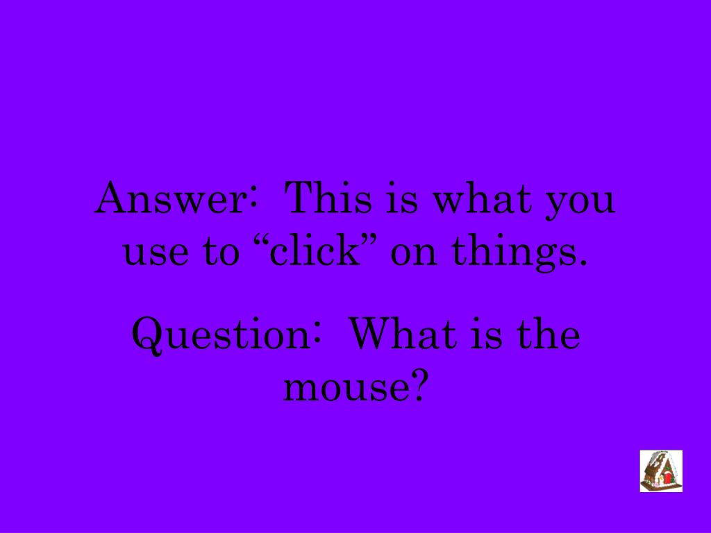 Answer: This is what you use to “click” on things. Question: What is the mouse?
