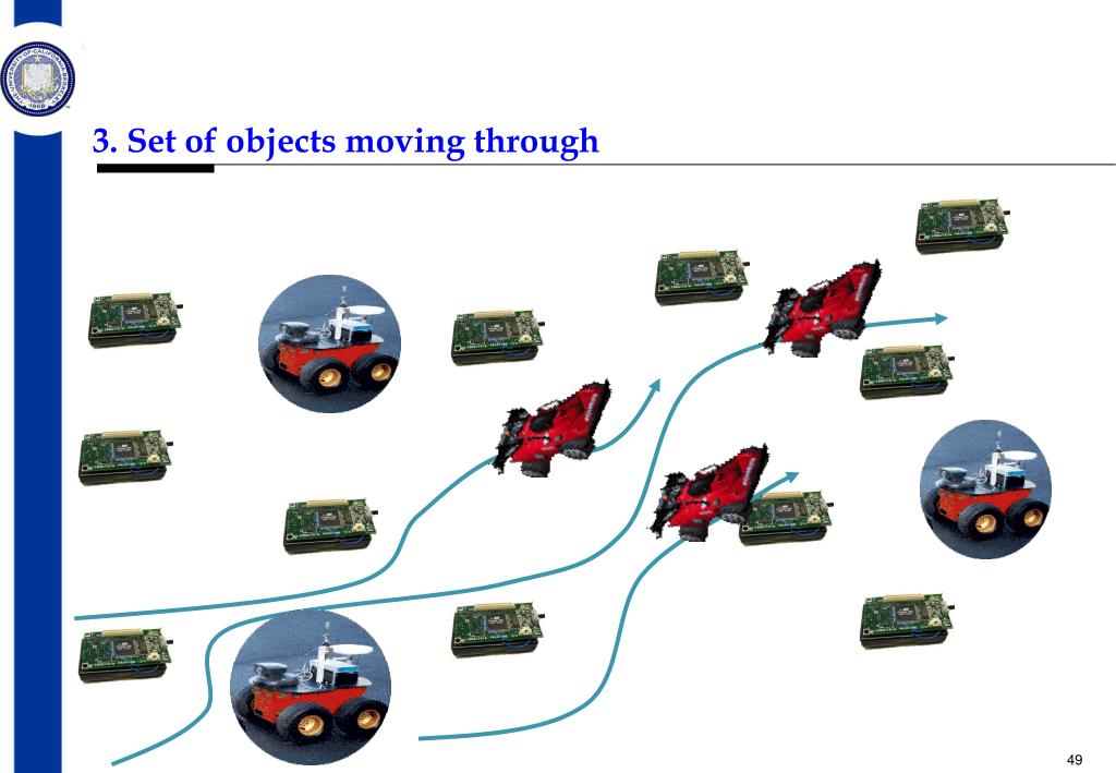 1. Field of wireless sensor nodes • Ad hoc, rather than engineered placement • At least two potential modes of observation • Acoustic, magnetic, RF