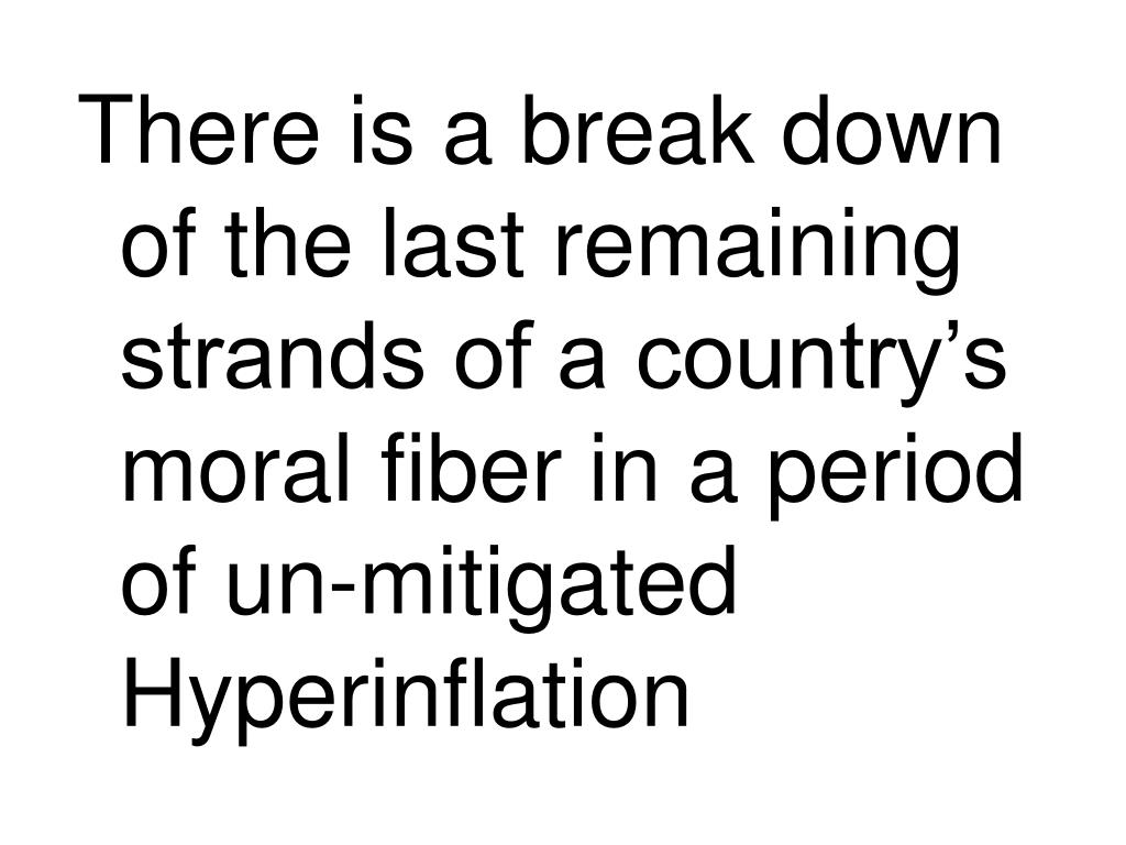 There is a break down of the last remaining strands of a country’s moral fiber in a period of un-mitigated Hyperinflation