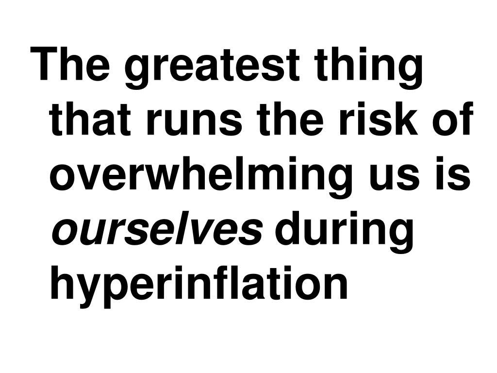The greatest thing that runs the risk of overwhelming us is ourselves during hyperinflation