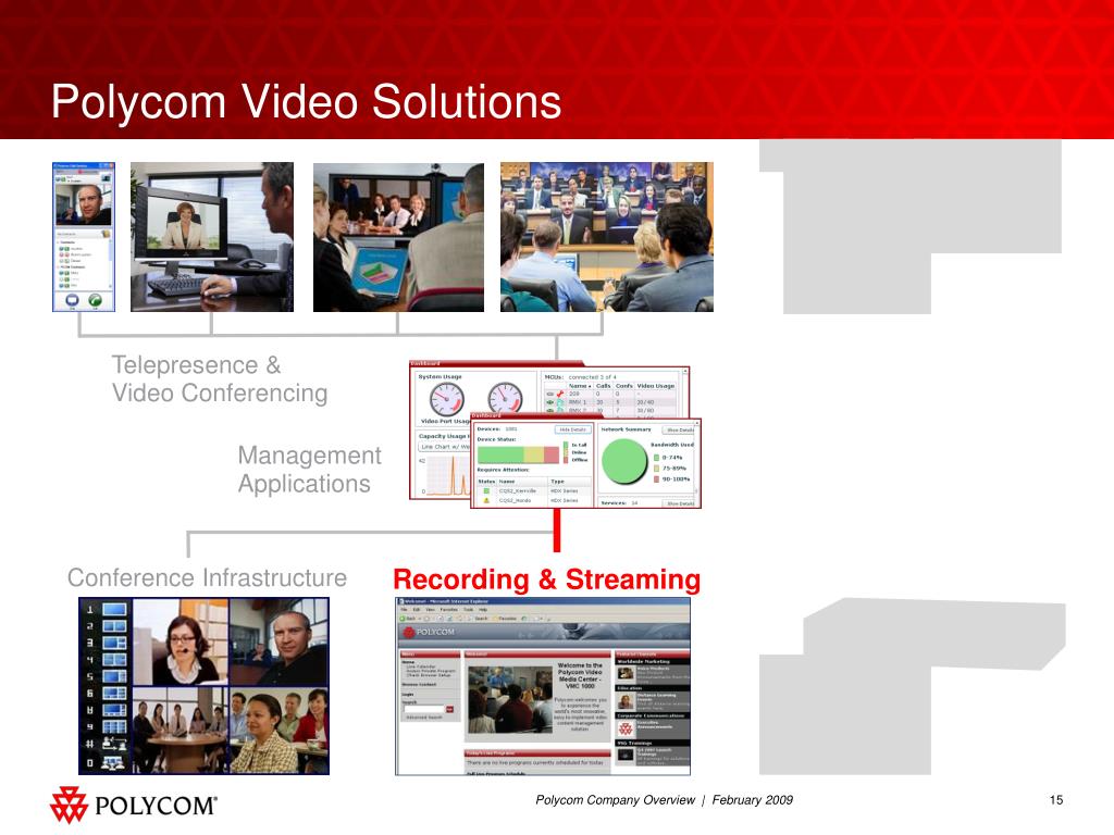 Polycom Video Solutions Telepresence & Video Conferencing ManagementApplications Conference Infrastructure Recording & Streaming