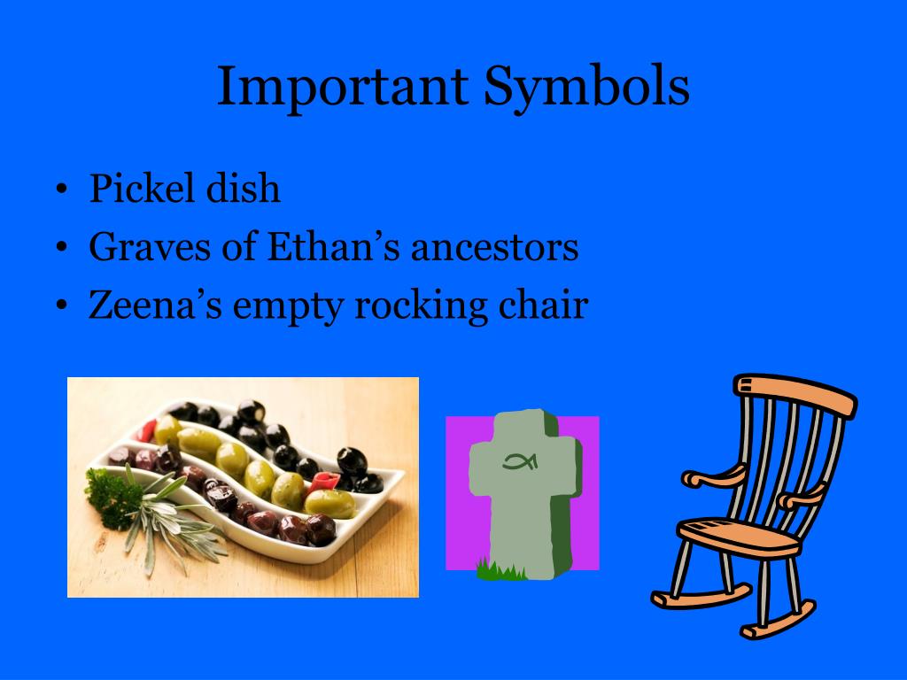 Important Symbols • Pickel dish • Graves of Ethan’s ancestors • Zeena’s empty rocking chair