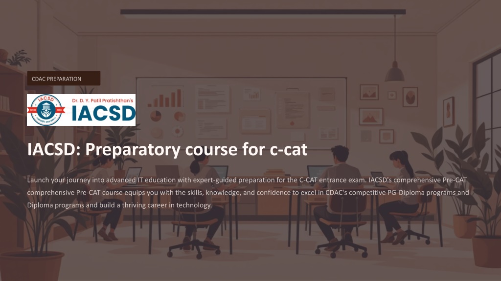 CDAC PREPARATION IACSD: Preparatory course for c-cat Launch your journey into advanced IT education with expert-guided preparation for the C-CAT entrance exam. IACSD's comprehensive Pre-CAT course equips you with the skills, knowledge, and confidence to excel in CDAC's competitive PG-Diploma programs and build a thriving career in technology.