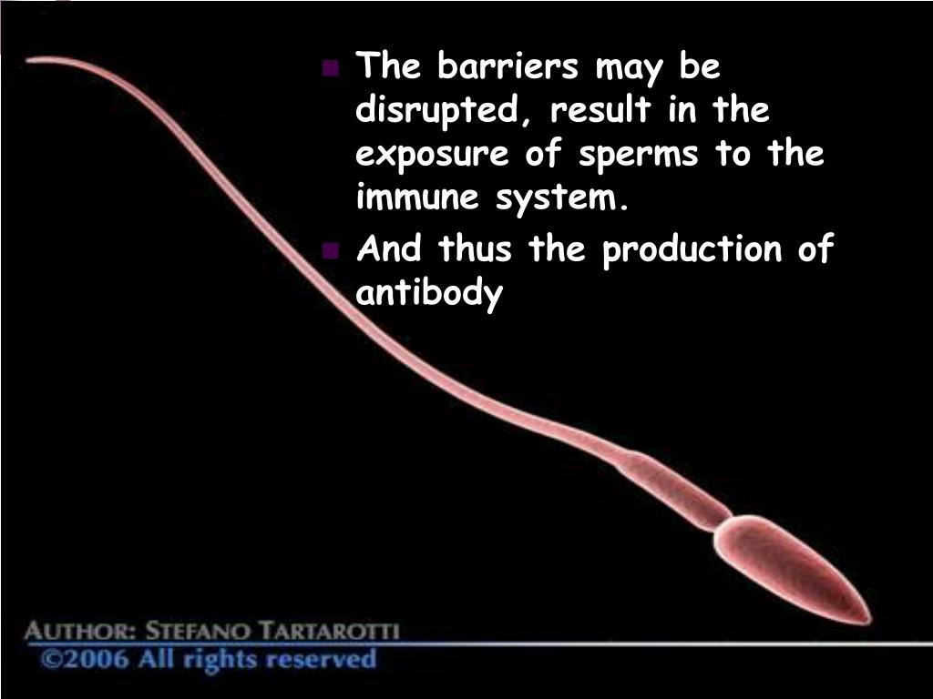 The barriers may be disrupted, result in the exposure of sperms to the immune system. • And thus the production of antibody