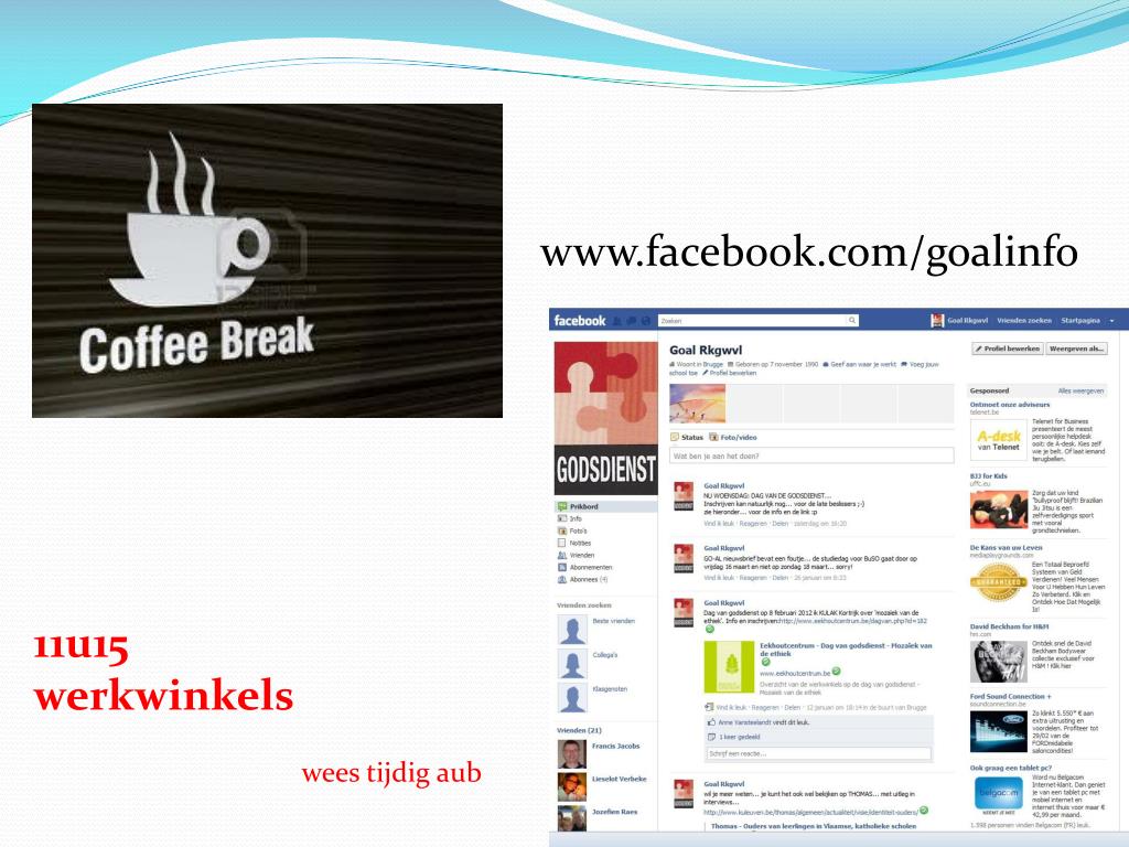 www.facebook.com/goalinfo 11u15 werkwinkels weestijdigaub