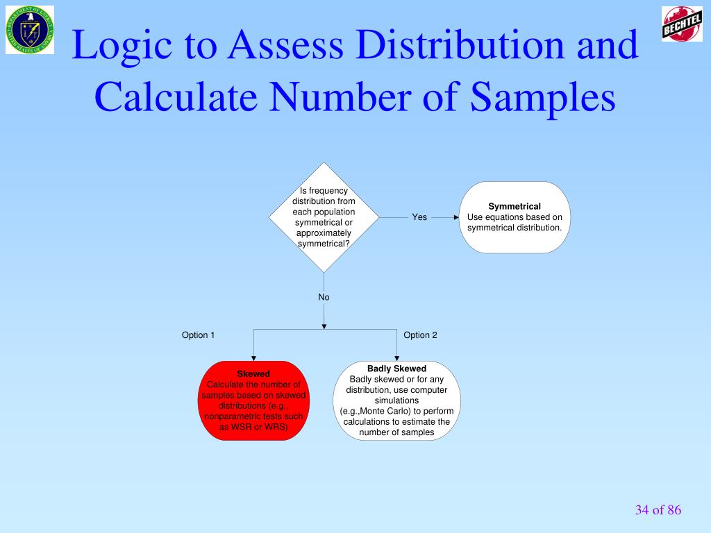 Step 7- Optimize Sample Design Go back to Steps 1- 6 and revisit decisions. Optimal Sample Design No Yes Information INActionsInformation OUT From Previous Step To Next Step Review DQO outputs from Steps 1-6 to be sure they are internally consistent Decision Error Tolerances Develop alternative sample designs For each design option, select needed mathematical expressions Gray Region Select the optimal sample size that satisfies the DQOs for each data collection design option • Perform a preliminary DQA: • Generate frequency distribution histogram(s) for each population • Select one or more statistical methods that will address the PSQs • List the assumptions for choosing these statistical methods • List the appropriate formula for calculating the number of samples, n Check if number of samples exceeds project resource constraints