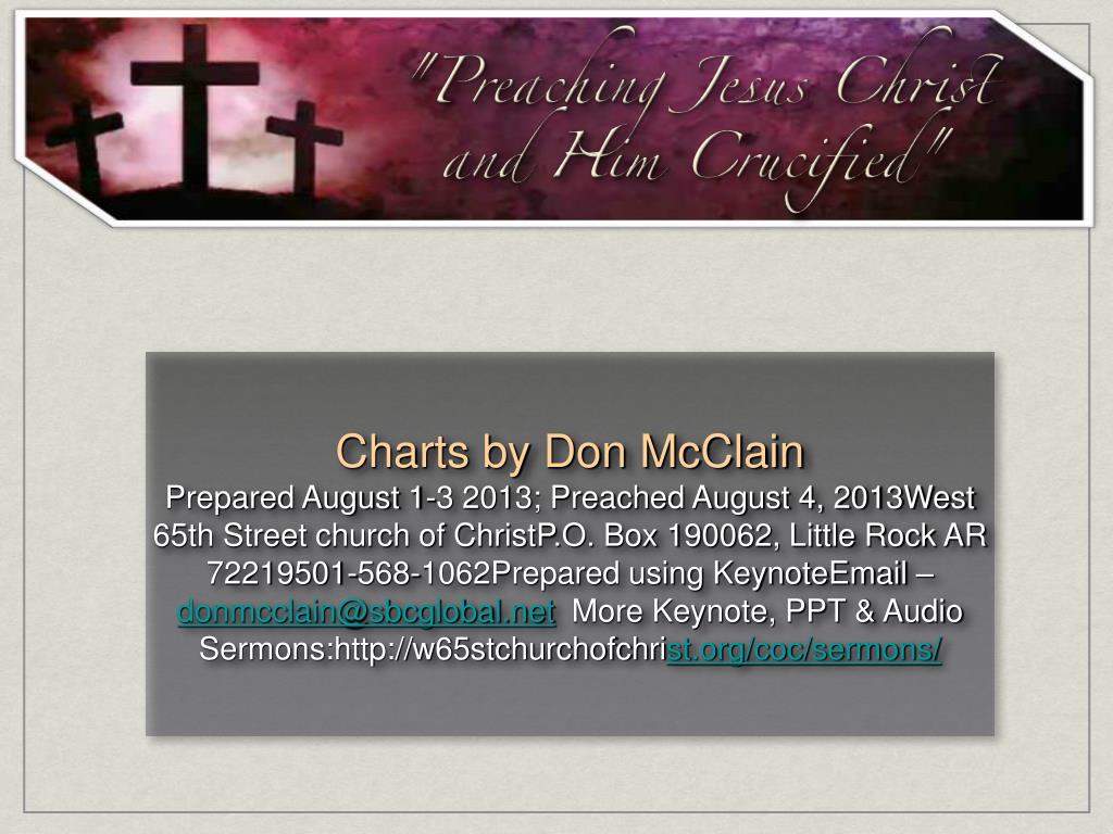 Charts by Don McClain Prepared August 1-3 2013; Preached August 4, 2013West 65th Street church of ChristP.O. Box 190062, Little Rock AR 72219501-568-1062Prepared using KeynoteEmail – donmcclain@sbcglobal.net More Keynote, PPT & Audio Sermons:http://w65stchurchofchrist.org/coc/sermons/