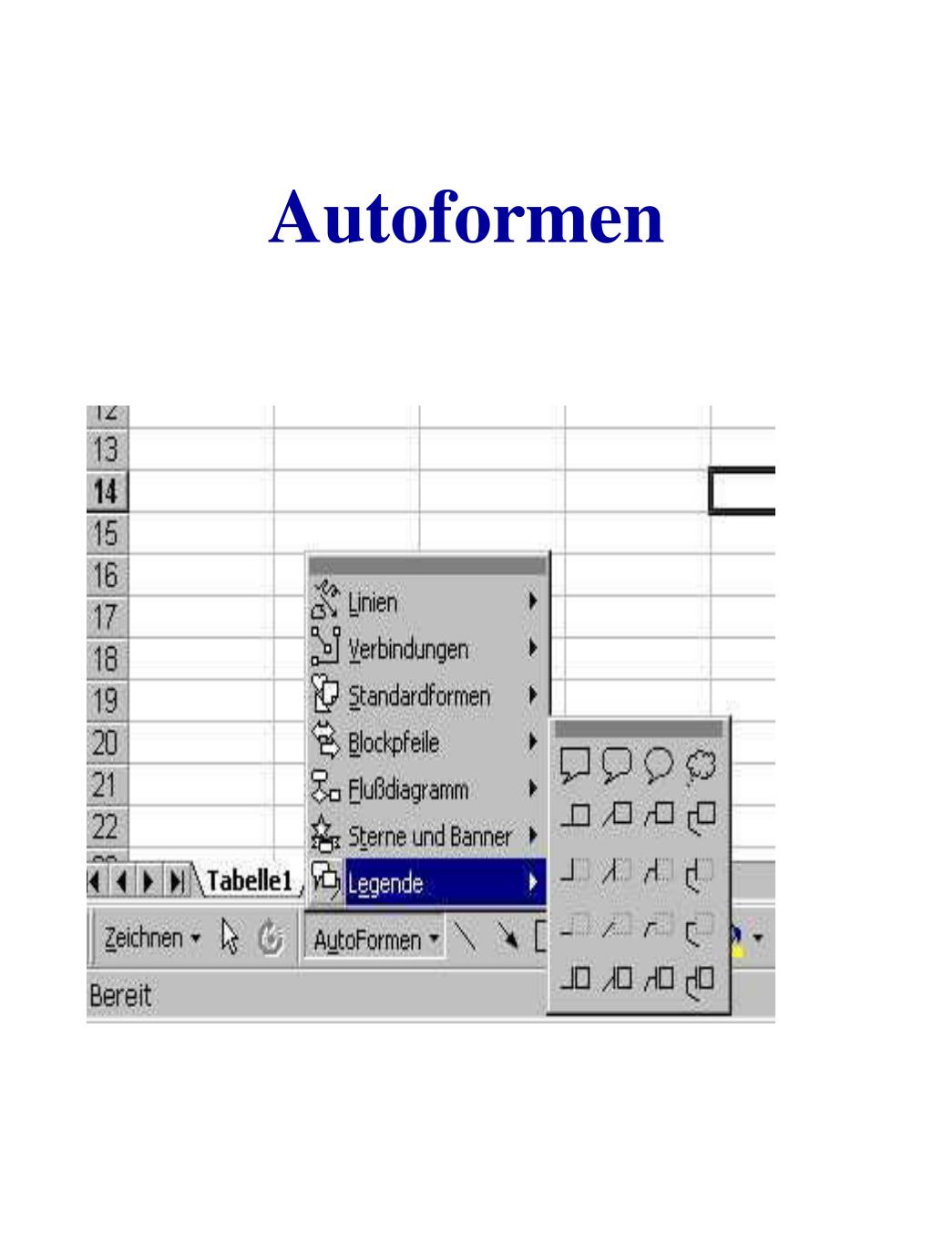 Die Symbolleisten Dezimalstelle hinzufügen bzw. löschen Füll-und Schriftfarbe Tausendertrennung Einzug Rahmen Symbolleiste Zeichnen