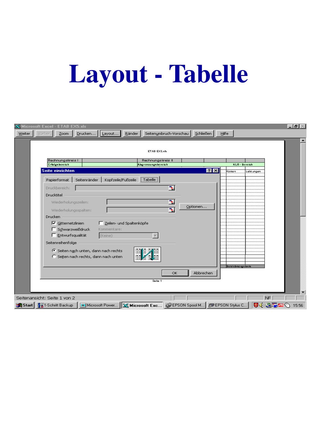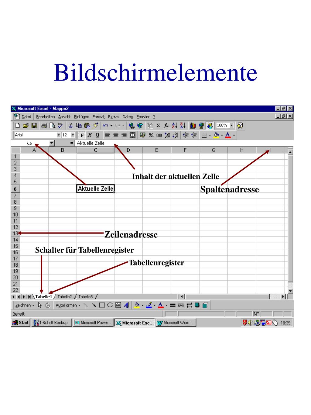 Bildschirmelemente Inhalt der aktuellen Zelle Spaltenadresse Zeilenadresse Schalter für Tabellenregister Tabellenregister