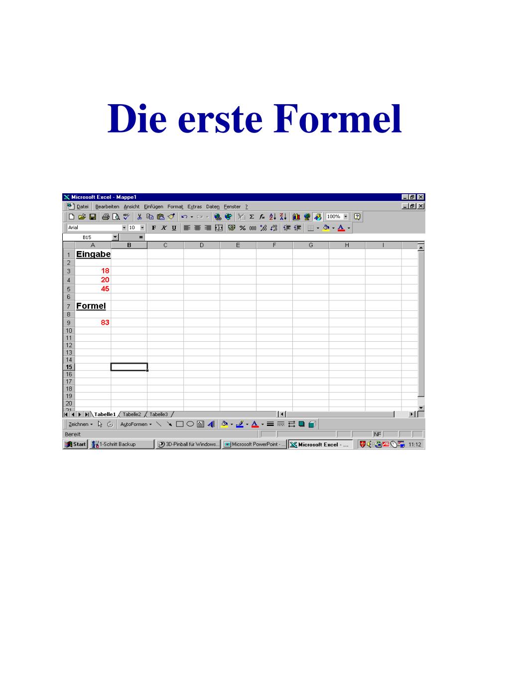 Elemente in Formeln • Formeln werden durch ein Gleichheits-zeichen (=) eingeleitet!
