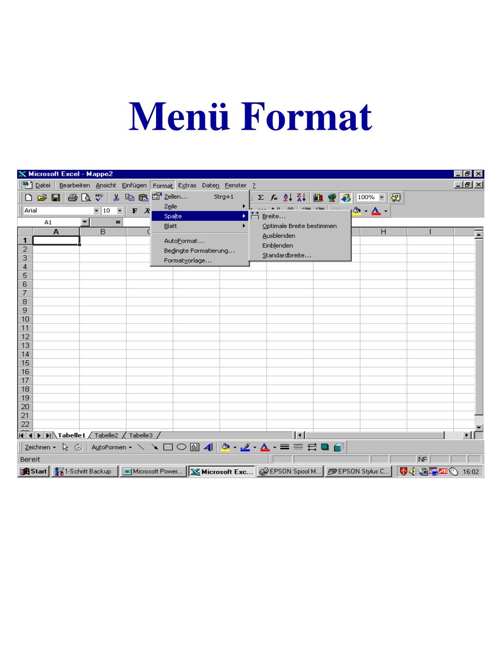 Bildschirmelemente Menüleiste Titelleiste Standard - Symbolleiste Format - Symbolleiste