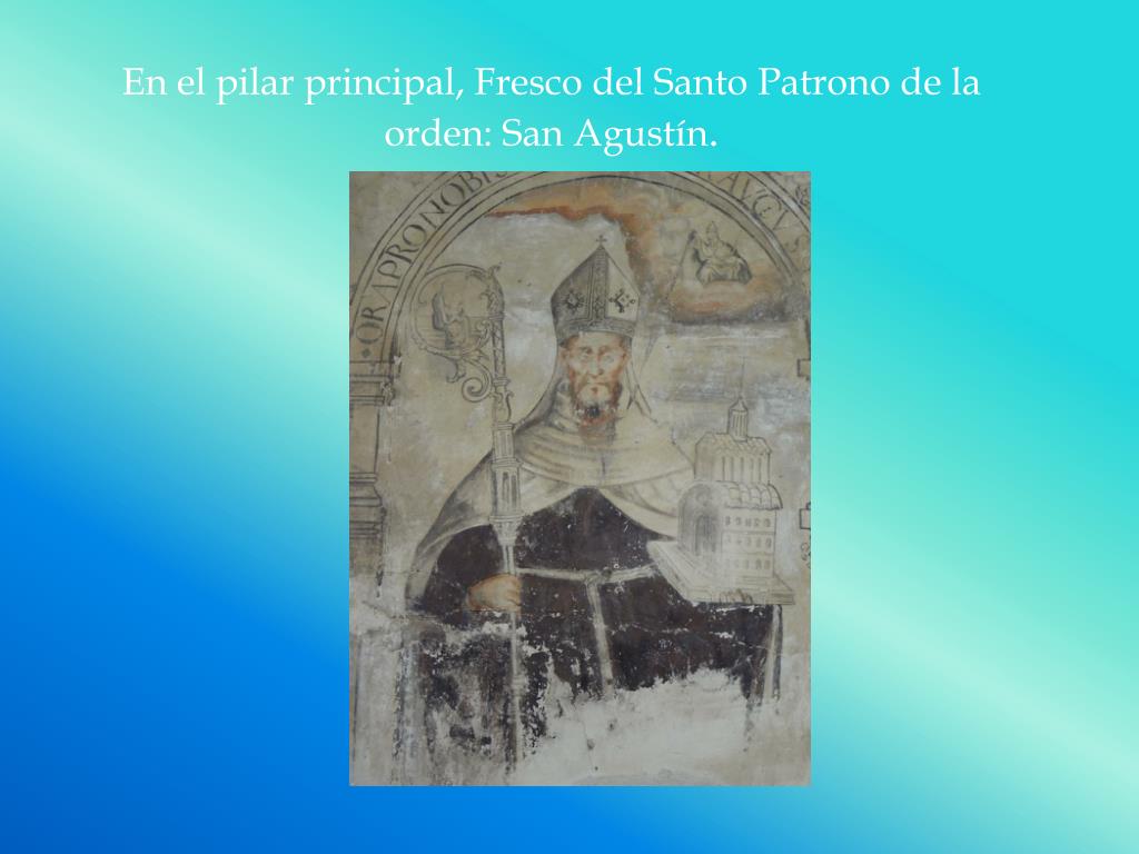 En el pilar principal, Fresco del Santo Patrono de la orden: San Agustín.