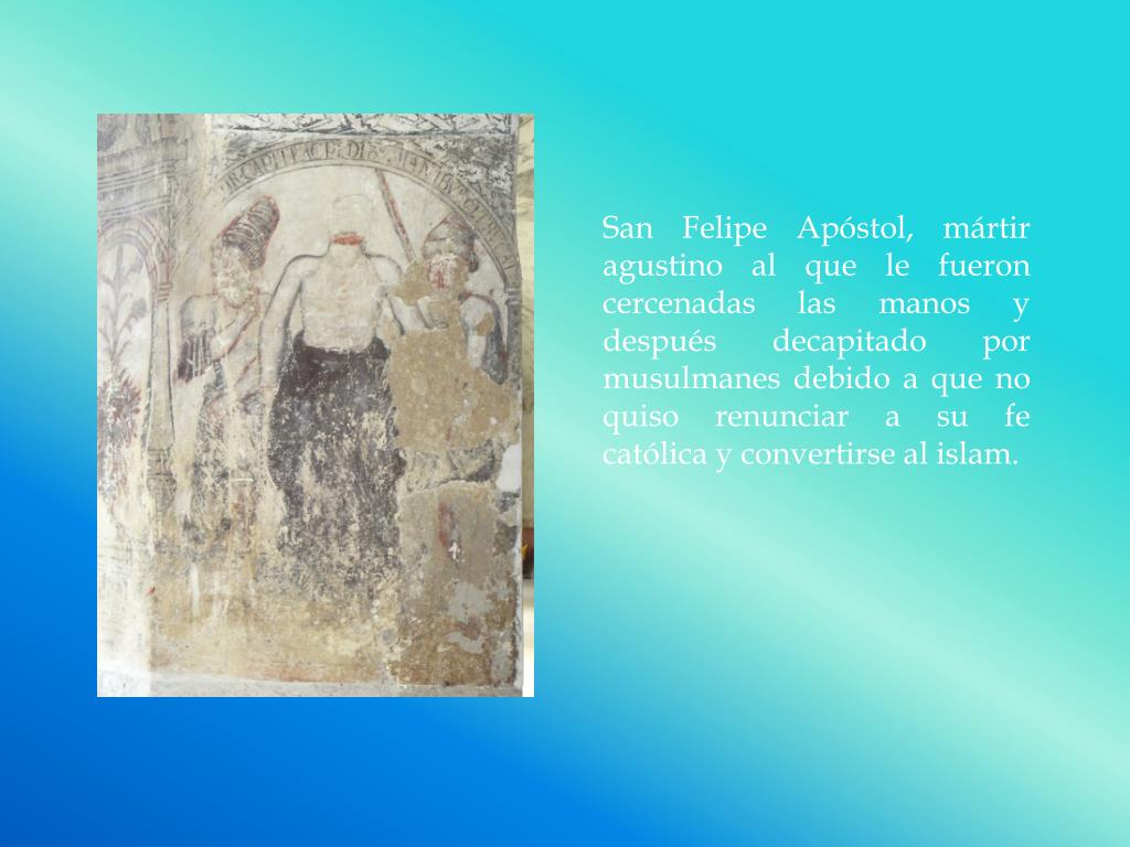San Felipe Apóstol, mártir agustino al que le fueron cercenadas las manos y después decapitado por musulmanes debido a que no quiso renunciar a su fe católica y convertirse al islam.