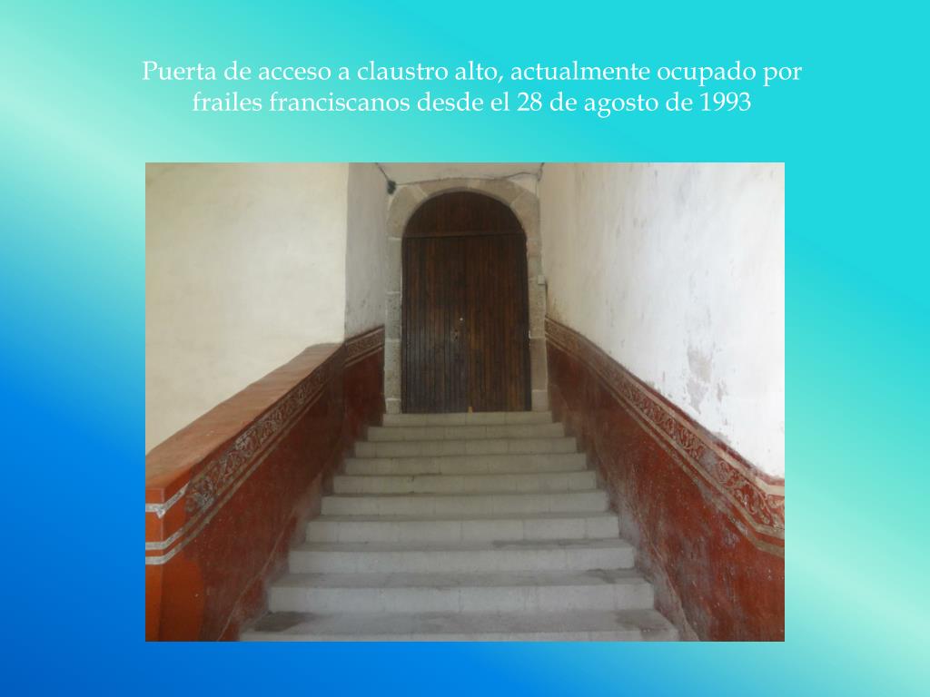 Puerta de acceso a claustro alto, actualmente ocupado por frailes franciscanos desde el 28 de agosto de 1993