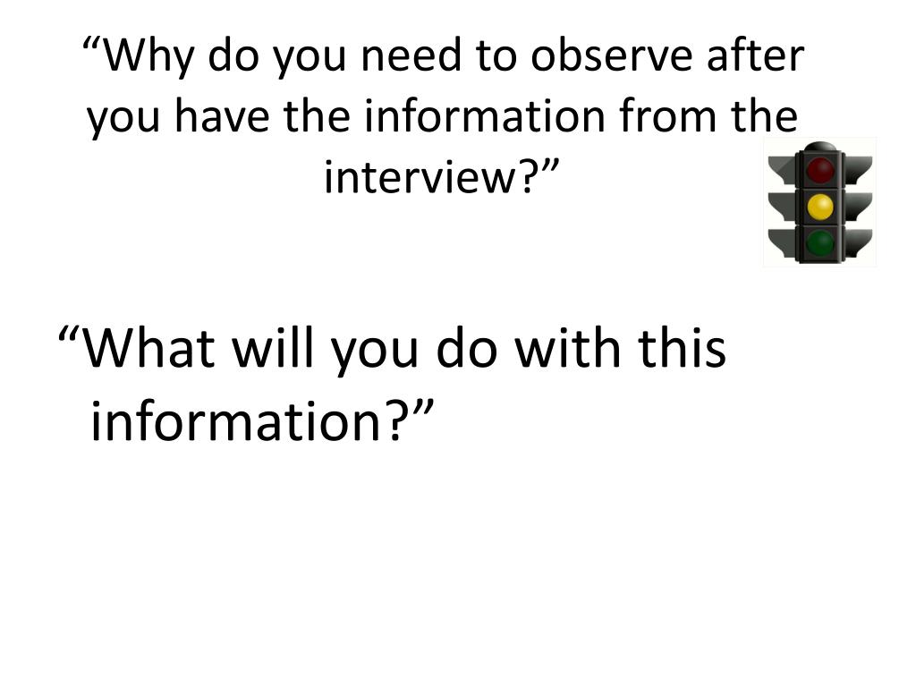 “Why do you need to observe after you have the information from the interview?” “What will you do with this information?”