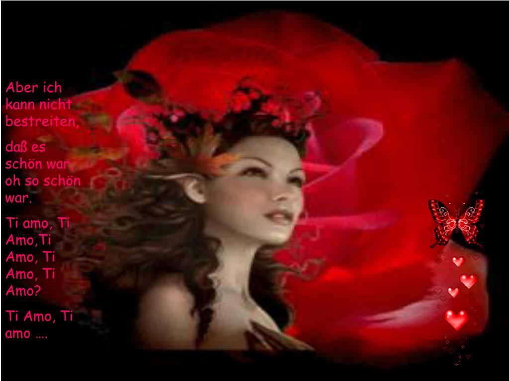 Aber ich kann nicht bestreiten, daß es schön war, oh so schön war. Ti amo, Ti Amo,Ti Amo, Ti Amo, Ti Amo? Ti Amo, Ti amo ….