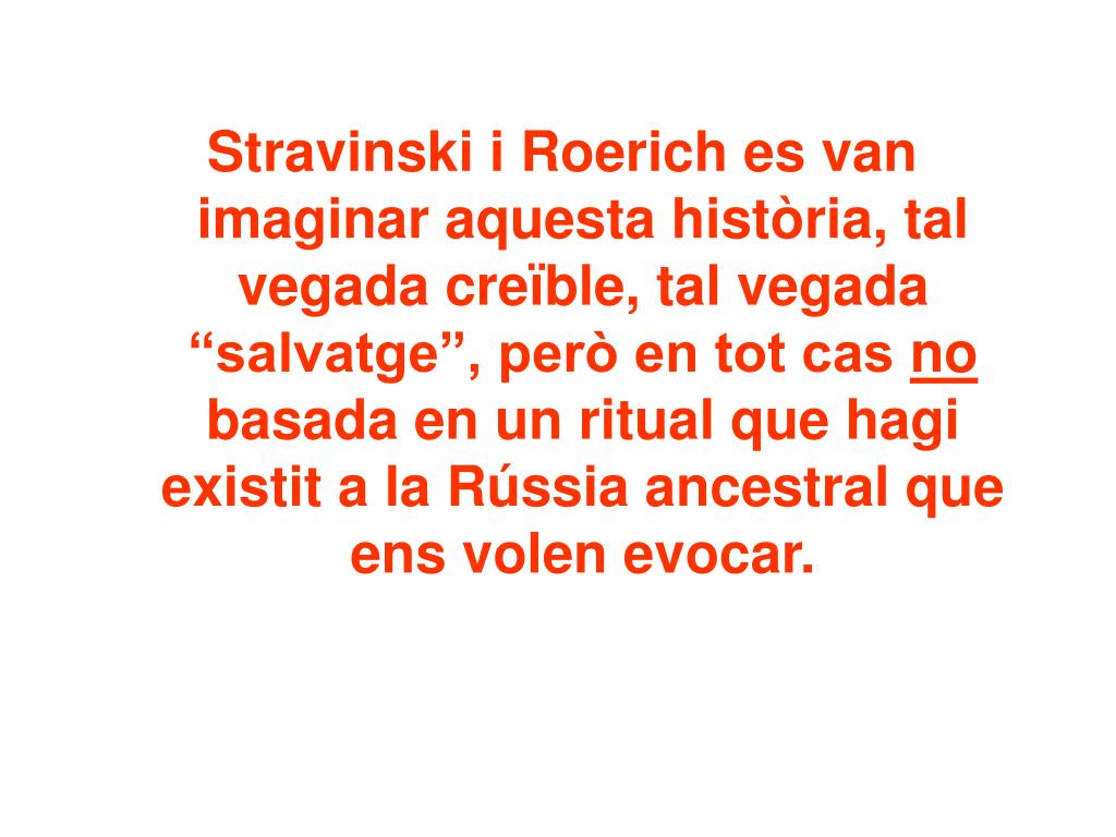 Stravinski i Roerich es van imaginar aquesta història, tal vegada creïble, tal vegada “salvatge”, però en tot cas no basada en un ritual que hagi existit a la Rússia ancestral que ens volen evocar.