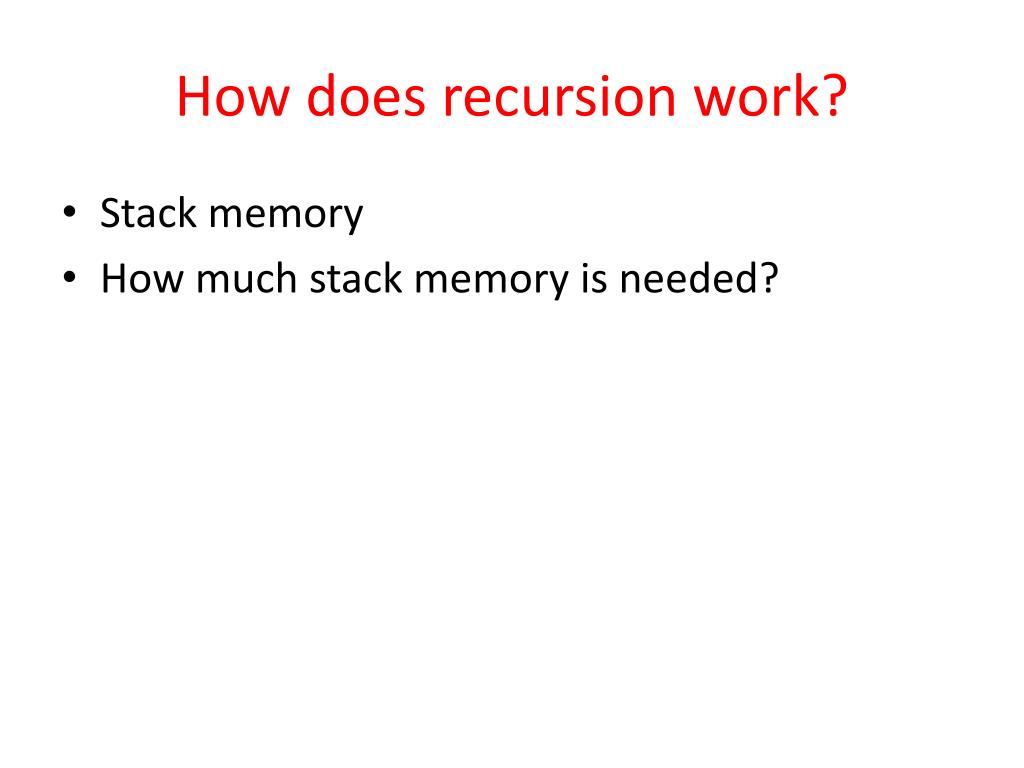 How does recursion work? • Stack memory • How much stack memory is needed?