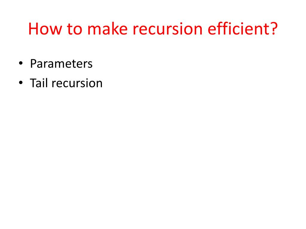 How to make recursion efficient? • Parameters • Tail recursion