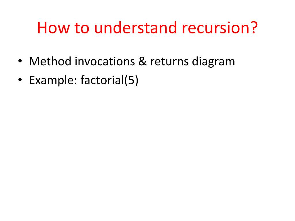 How to understand recursion? • Method invocations & returns diagram • Example: factorial(5)