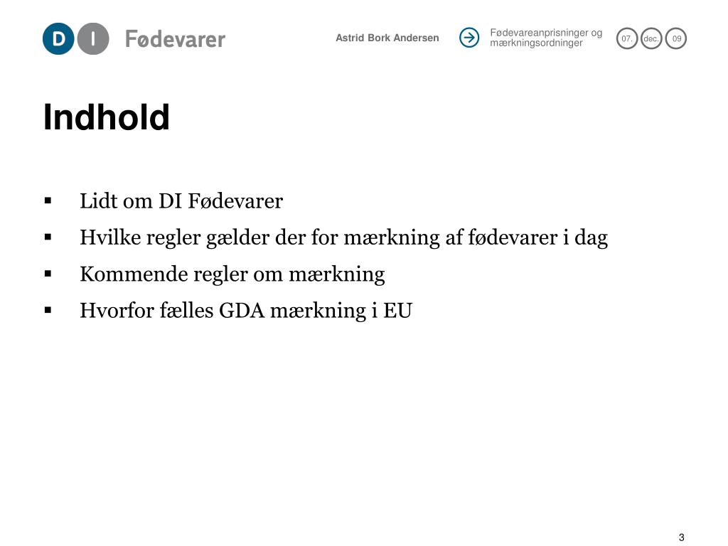 Indhold • Lidt om DI Fødevarer • Hvilke regler gælder der for mærkning af fødevarer i dag • Kommende regler om mærkning • Hvorfor fælles GDA mærkning i EU