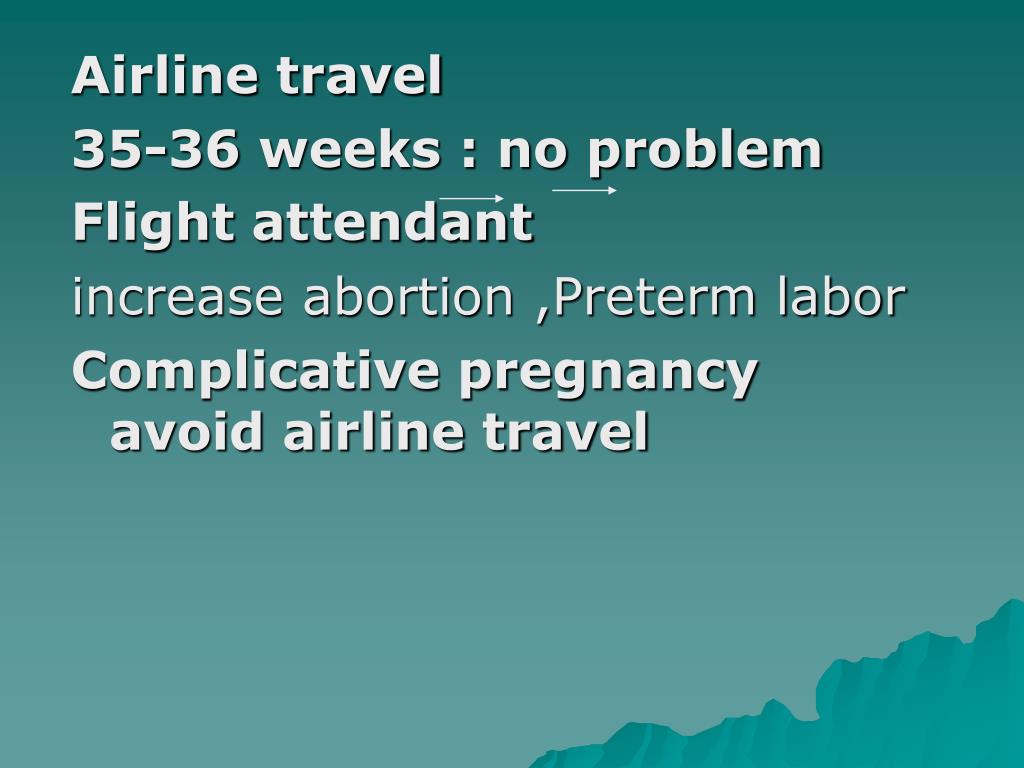 Airline travel 35-36 weeks : no problem Flight attendant increase abortion ,Preterm labor Complicative pregnancy avoid airline travel