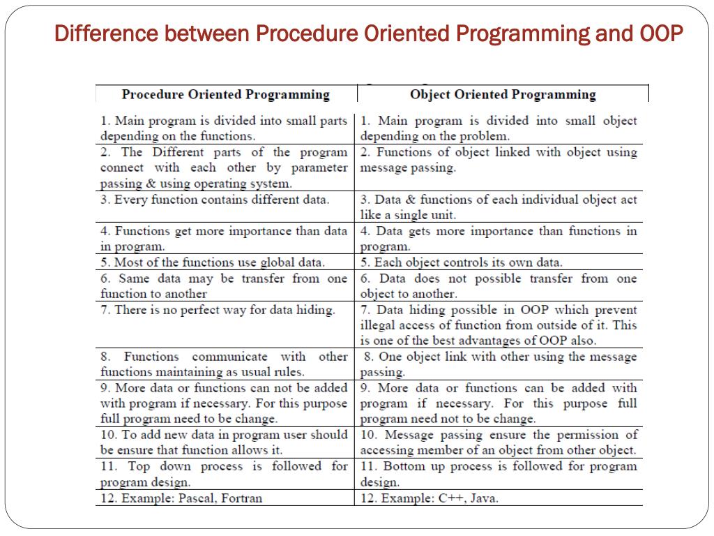 Unit-2 Objects and Classes. Basics of objects and classes in java. Introduction. Languages like Pascal, C, FORTRAN, and COBOL are called procedure oriented programming languages. Since in these languages, a programmer uses procedures or functions to perform a task.
