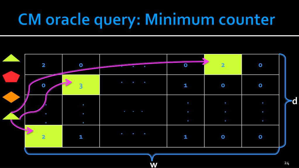 CM oracle query: Minimum counter d . . . . . . . . . . . . . . . w